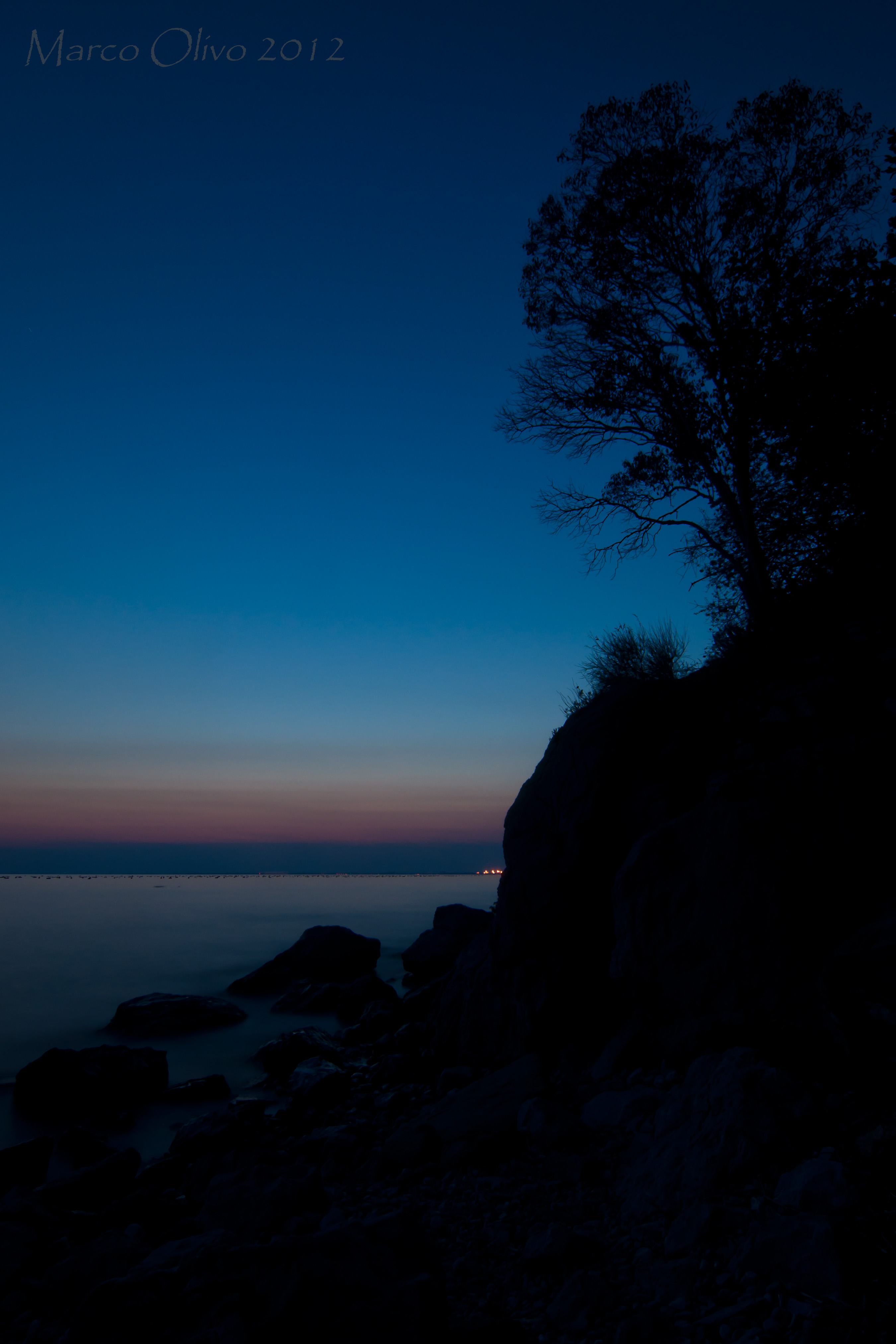 Albero e scogli avvolti nel blu