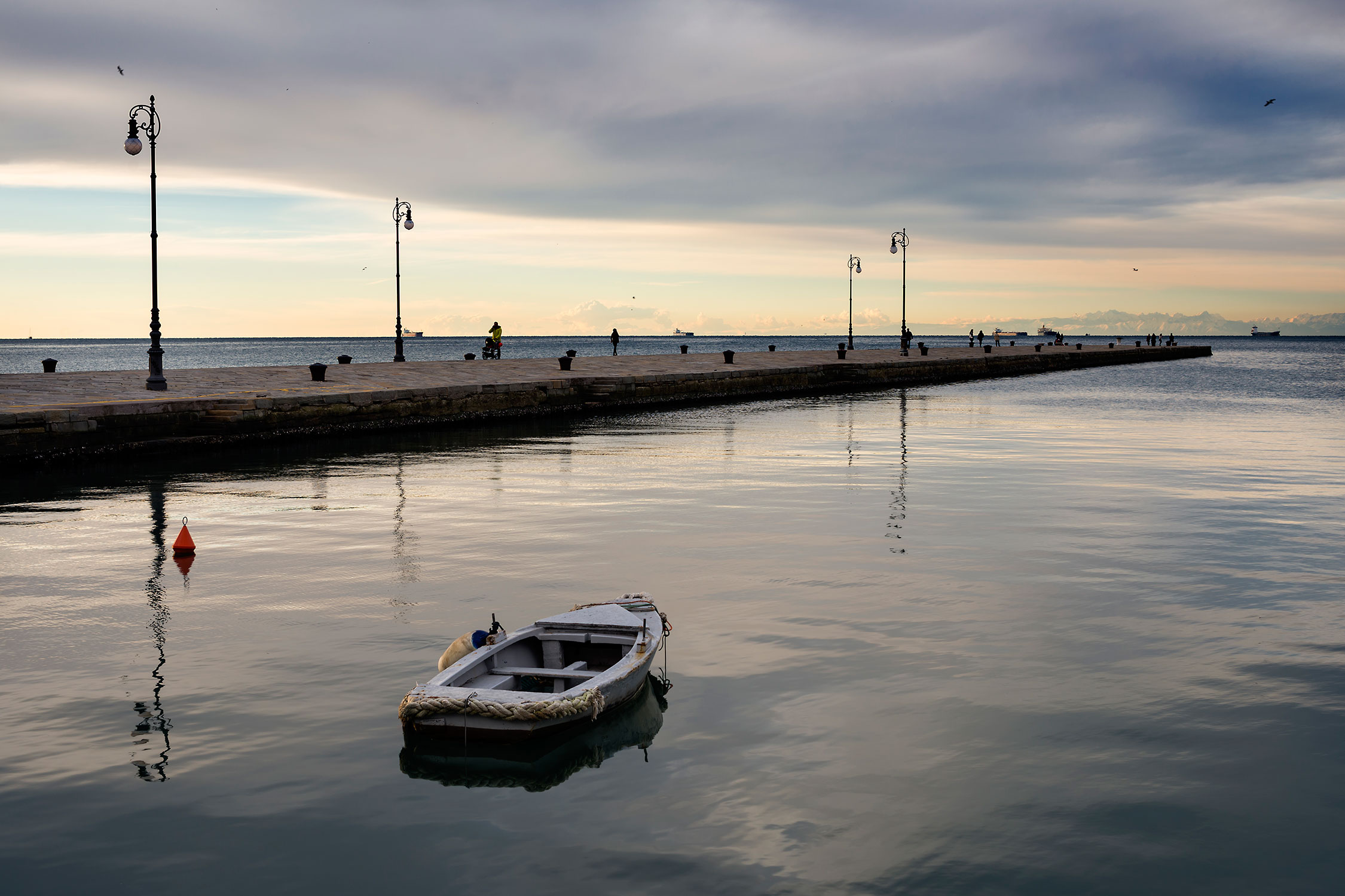 - attesa: a volte una nuvola che passa e oscura il sole può rovinarci lo scatto. A volte un’onda che si infrange o un gabbiano che sta per attraversare il panorama che sta davanti al mirino possono arricchire non poco la nostra fotografia: osserviamo quindi tutto ciò che accade e che influenza/influenzerà la luce e la scena. Nell’esempio sotto, senza gabbiano la foto sarebbe molto più statica e più banale.