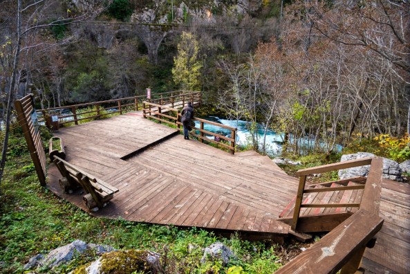 Addentrandosi iniziano 9km di strada sterrata per arrivare alla meta; io li ho fatti con una normale Toyota Corolla, quindi è più che percorribile con quasi qualsiasi macchina. In fondo c’è la guardia del parco, pagate 6 KM (marchi convertibili) per entrare, e proseguite con l’auto. Il guardiano ci ha raccontato tante cose e, tra le altre, ha detto una cosa verissima: questo posto non ha nulla da invidiare a Plitvice! Certo, è più spartano, meno servito, però questo è pure un pregio.