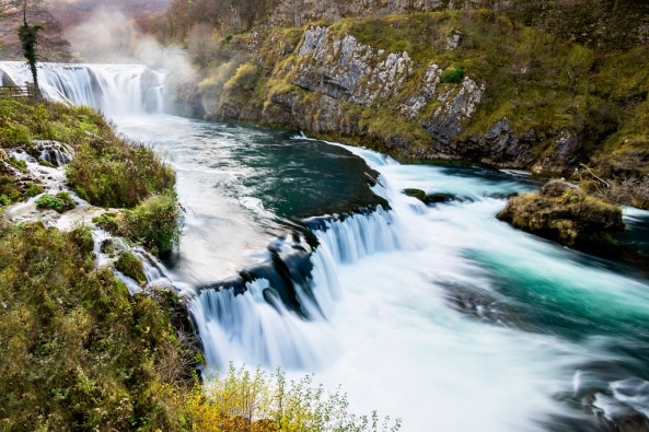 Ma partiamo dall’inizio: come ci si arriva? Troverete facilmente l’indicazione per arrivare fino a Bihac, è una città grandicella e popolosa. Da lì, si deve prendere la strada in direzione Sarajevo e uscire dal centro abitato. Dopo qualche km, sulla dx, c’è una deviazione per Lohovo, e lì si può fare conoscenza con il fiume presso il dvo slap (2 cascate) che sorge presso un piccolo ristorante tipico che offre anche stanze (non riscaldate) con vista diretta su questo piccolo parco incantevole; loro tengono anche vari animali, è quasi un micro zoo. In zona ci sono inoltre diverse scuole di rafting e kajak.